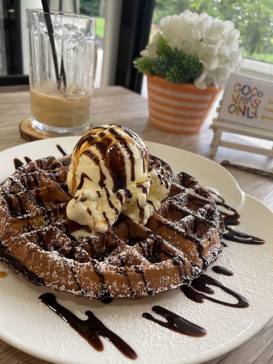 The menu highlights straightforward comfort food with a few thoughtful touches: soft eggs benedict, café-style grilled cheese and ham sandwiches, and waffles served with ice cream stand out as repeat orders. A notable detail is the use of local ingredients like blue pea flower for their herbal drink, giving a subtle local twist to the offerings. Visitors also appreciate the freshly baked cookies and brownies served with ice cream — treats that complement the strong, aromatic coffee quite well.
